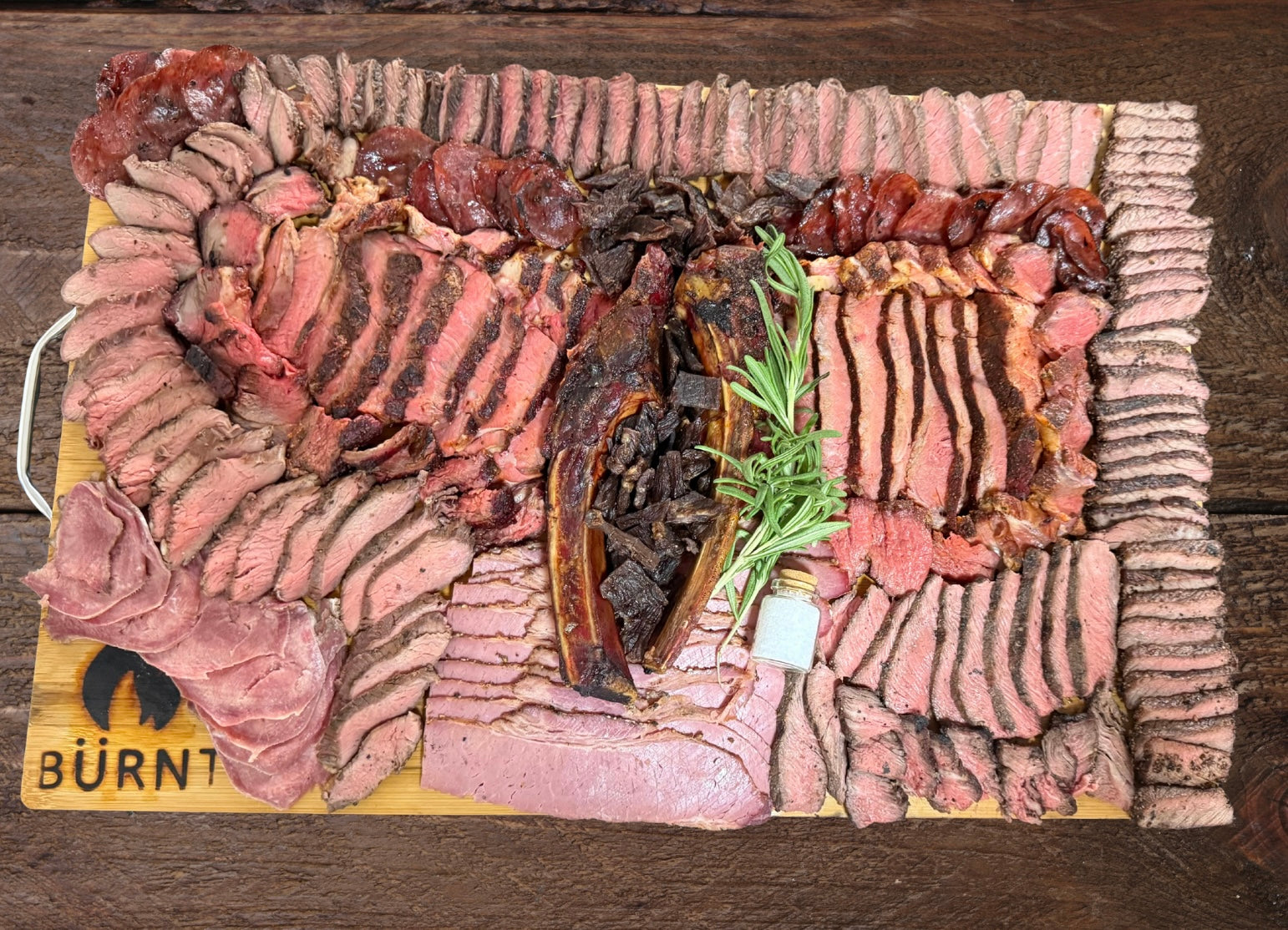 Enjoy the ultimate mix of Tongue, Our Premium Rib Eye ( Smoked and Grilled), Smoked Brisket, Oyster Steak, Jerky and Salami all seasoned with our house-crafted seasonings and prepared to perfection.